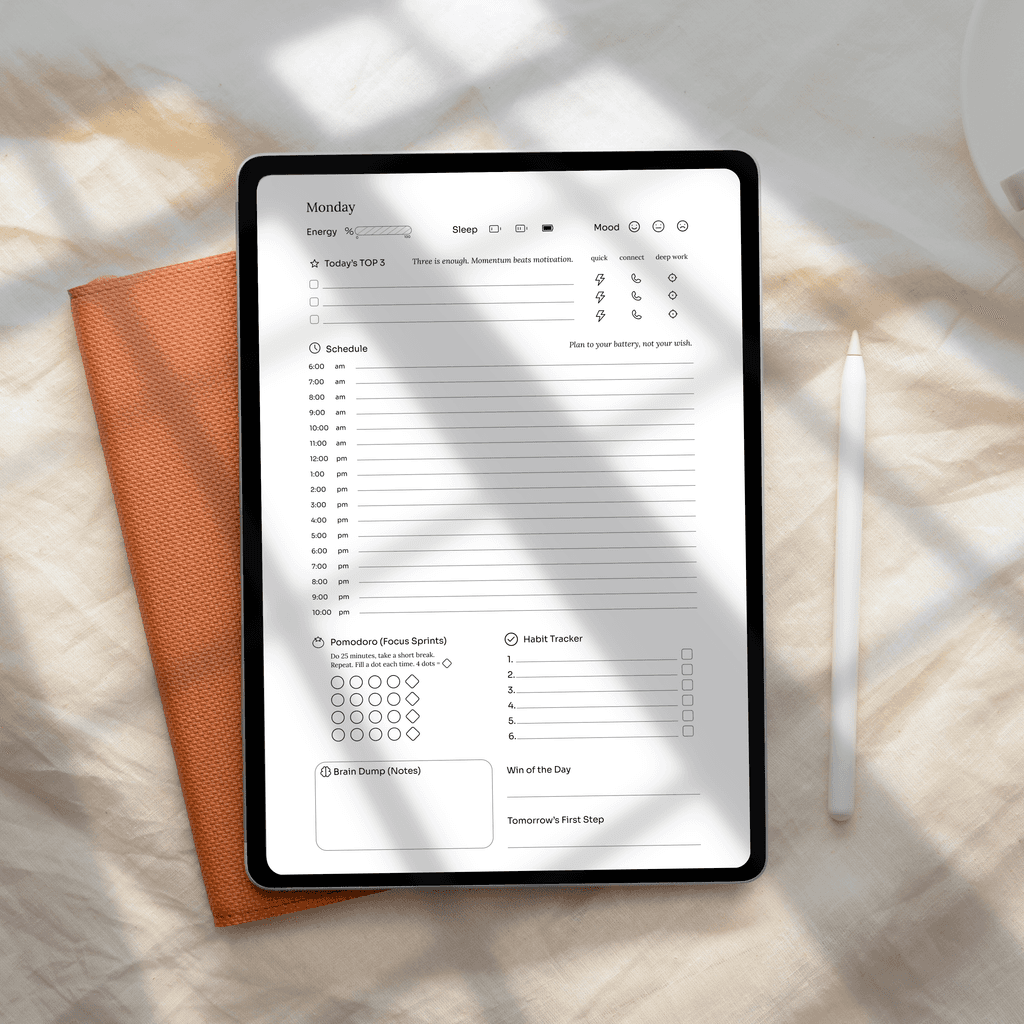 Premium, science-backed planning for clarity, focus, and calm. Designed to help ADHD-aware, high-performing creatives and professionals protect their time and make meaningful progress.